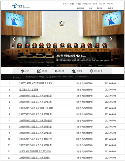 - ‘정보공개 청구’ 메뉴에서 "2025도 4697 사건 로그기록 공개" 제목으로 청구서를 제출하세요.